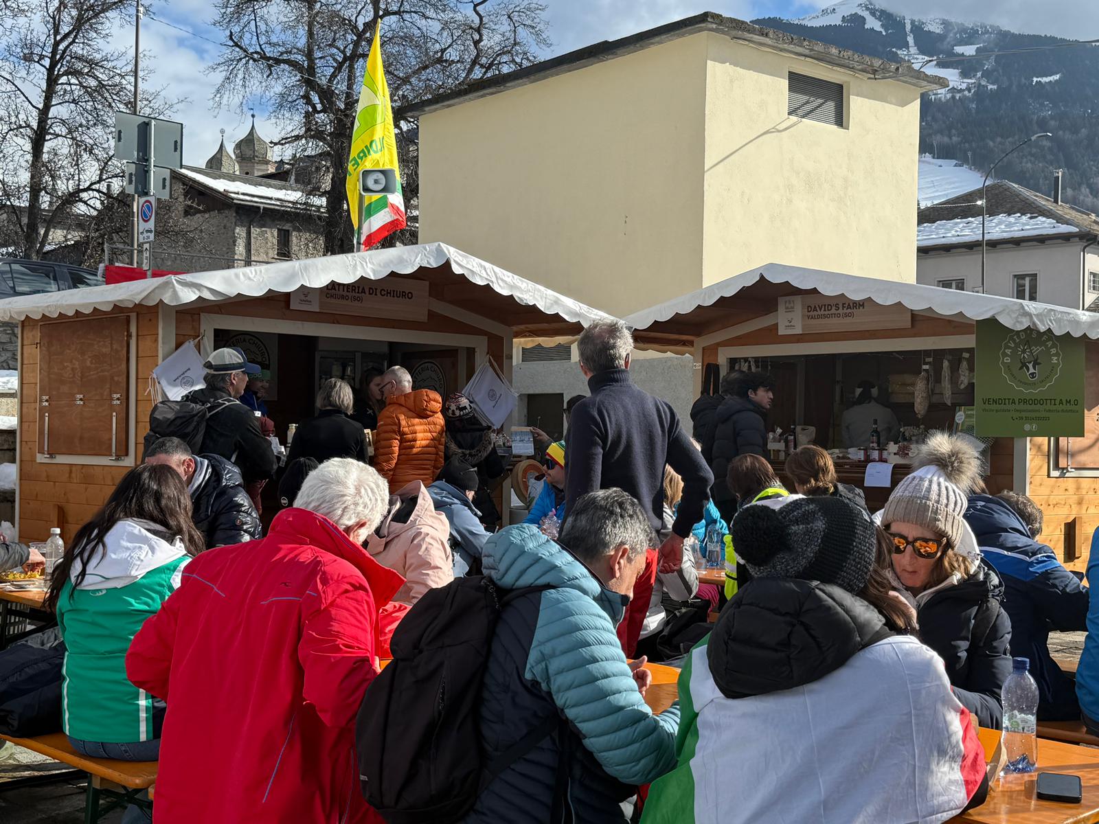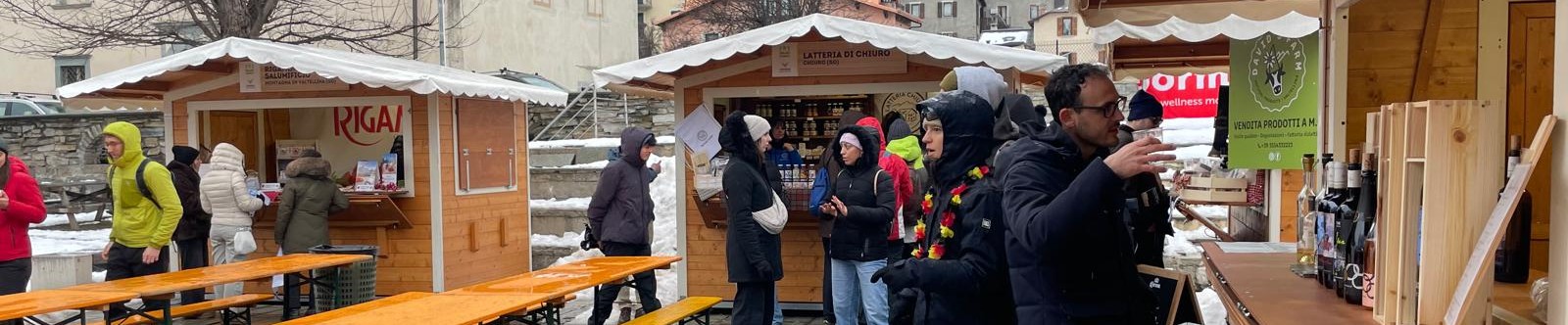 Non il solito mercato a km 0 "dove si compra e basta", ma un luogo dove si ascolta, si assaggia, ci si può sedere per gustare un piatto della tradizione enogastronomica valtellinese; un luogo dove le emozioni delle gare olimpiche si affiancano a quelle, più lente e immediate, del palato.